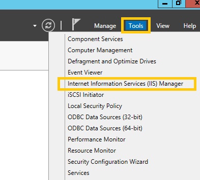 - Iniciar el servicio IIS seleccionando en el Administrador del Servidor > Herramientas > Internet Information Services (IIS) Manager