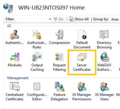 2. En el panel central seleccionar la opcion Certificados del Servidor/Server Certificates.