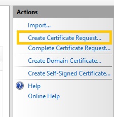 3. Seleccionar «Crear Solicitud de Certificado» / «Create Certificate Request» en el lado derecho del menu.