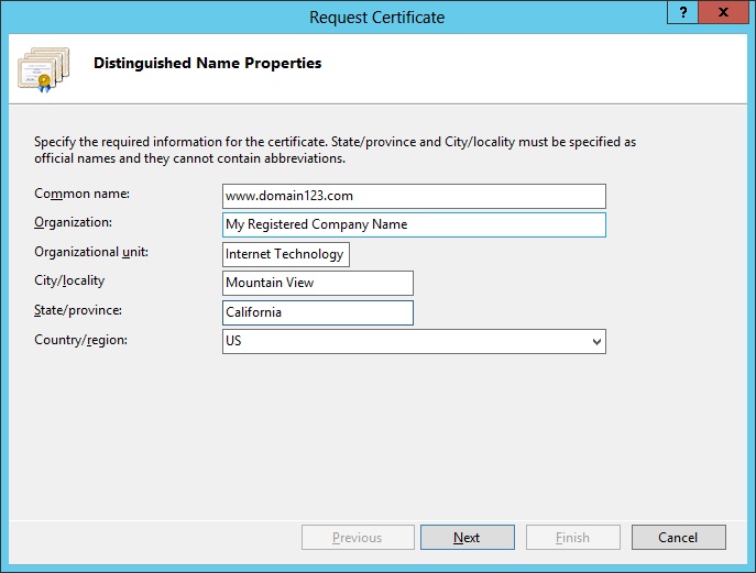 - Common Name: El Nombre de dominio completo para el cual el certificado sera emitido (ejm : www.midominio.com)