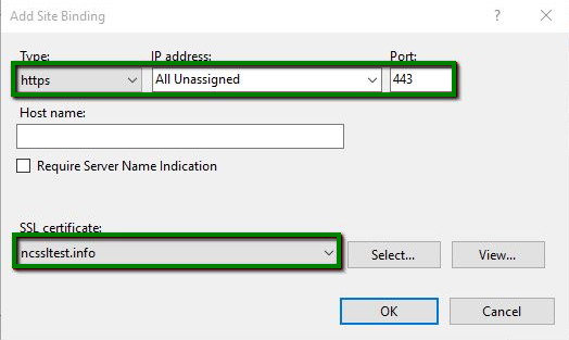 Nota: por lo general, no es necesario reiniciar el servidor, por lo que después de que se haya instalado el certificado SSL y se haya creado el enlace, se podrá acceder a su sitio a través de https:// en un navegador.