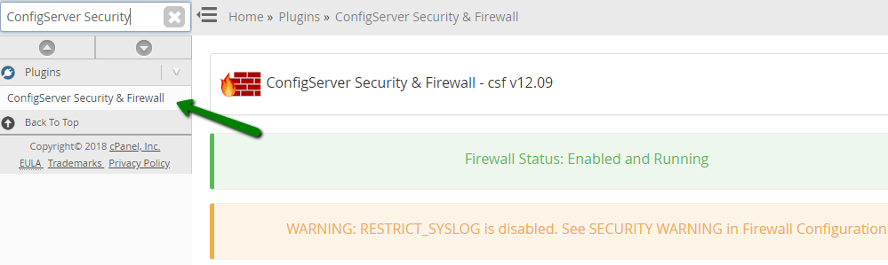 Vaya a WHM >> sección Complementos >> ConfigServer Security & Firewall.