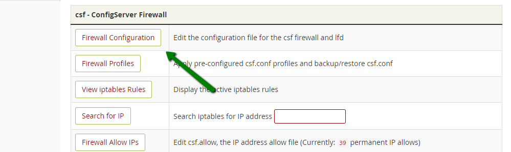 Luego, proceda a CSF >> Configuración de firewall.