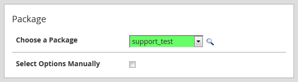 Paquete: en este menú desplegable puede ver la lista de los paquetes de alojamiento existentes y seleccionar uno para su nueva cuenta