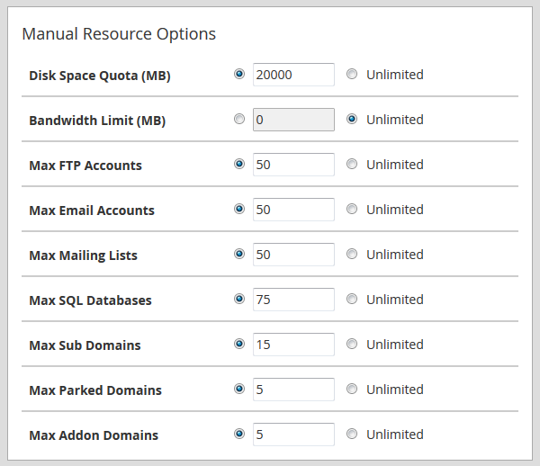 Al crear una nueva cuenta de cPanel, deberá configurar el siguiente conjunto de características de la cuenta: