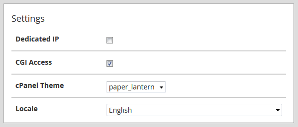 Tema cPanel: seleccione el tema que utilizará su nueva cuenta; puede encontrar una descripción general de los temas x3 y paper_lantern en esta guía