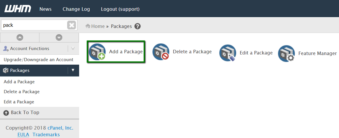 Para acelerar la creación de la cuenta, recomendamos agregar Paquetes, un conjunto específico de características para el uso predeterminado durante la creación de la cuenta de cPanel: